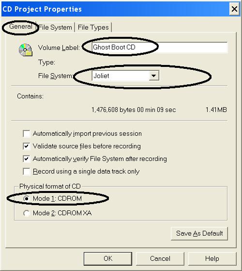 Screen Shot: Type of Bootable CD